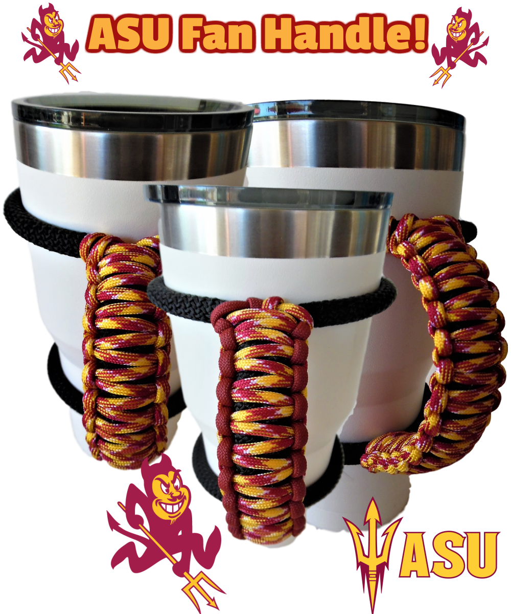 Paracord handle for your Yeti Rambler, Tumbler, S’WIRL, Hydro Flask,Generic Tumblers, and Slim Bottle Drinks! Easy to put on, Grips like King Kong, easy to remove! One size fit most (12 oz to 42 oz). Our handles are precision handmade using AMERICAN MADE 550 Paracord. ALL OF THE MATERIALS IN OUR HANDLES ARE MADE IN THE USA. We are a Veteran owned business. All handles come with a 100% No Questions asked craftsmanship guarantee (if it comes apart in anyway, it will be replace with no questions asked).